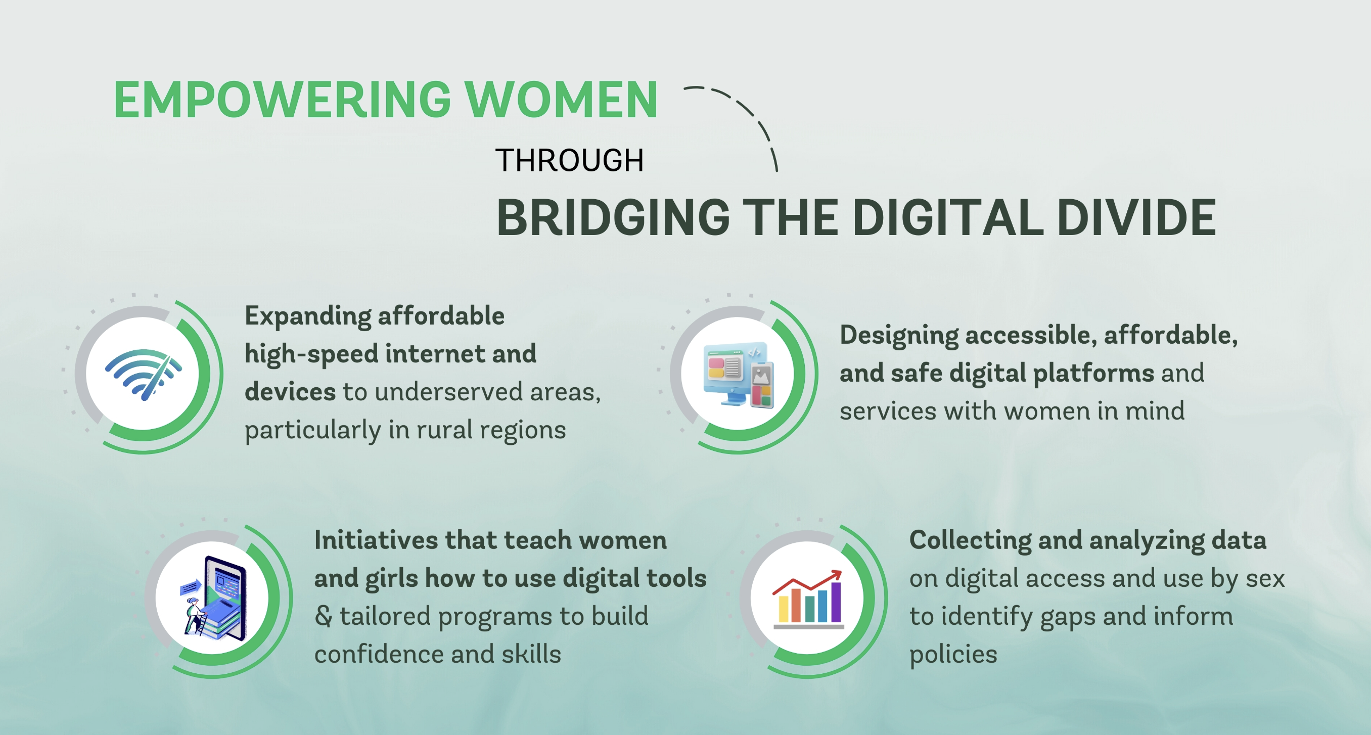 This digital divide excludes women from education, information, financial services, and employment opportunities.