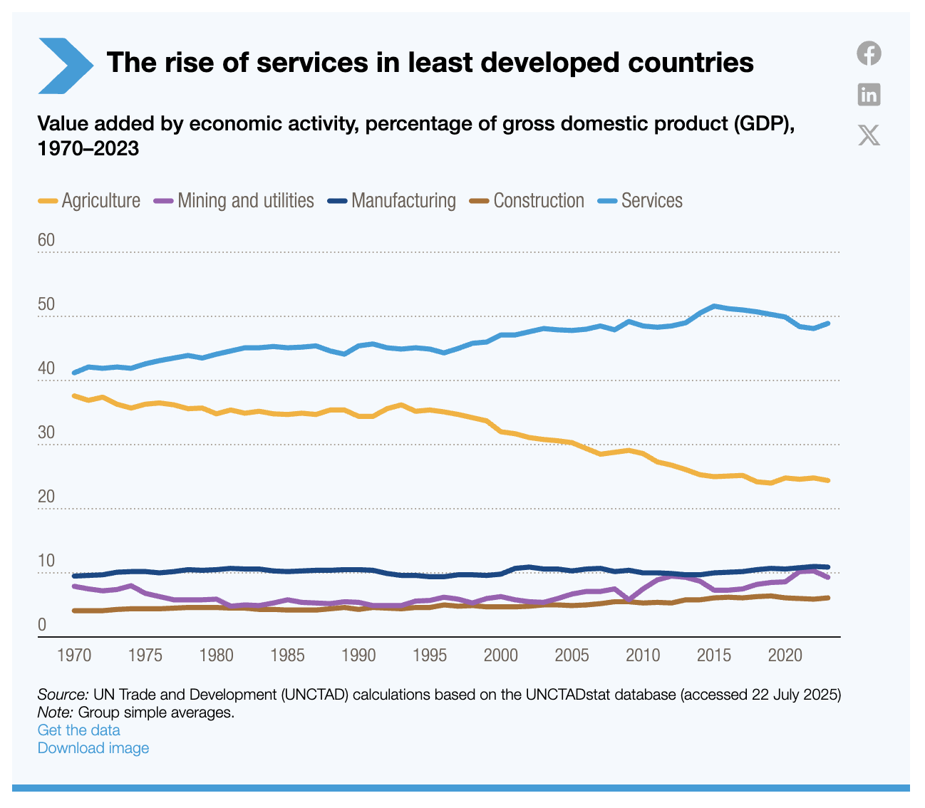 - Les services sont désormais une source majeure de croissance et d’emplois dans les pays les moins avancés.
