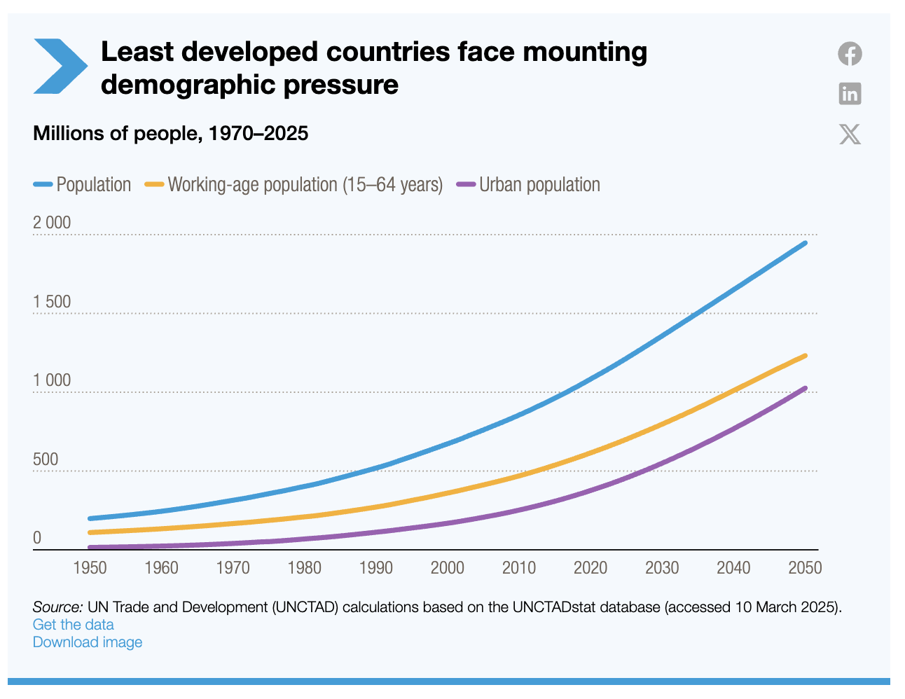 Les pays les moins avancés sont confrontés à un défi sans précédent en matière d’emploi. D’ici à 2050, ils devront créer des emplois pour environ 13,2 millions de nouveaux entrants sur le marché du travail chaque année, faisant de la création d’emplois une contrainte déterminante des stratégies de développement.