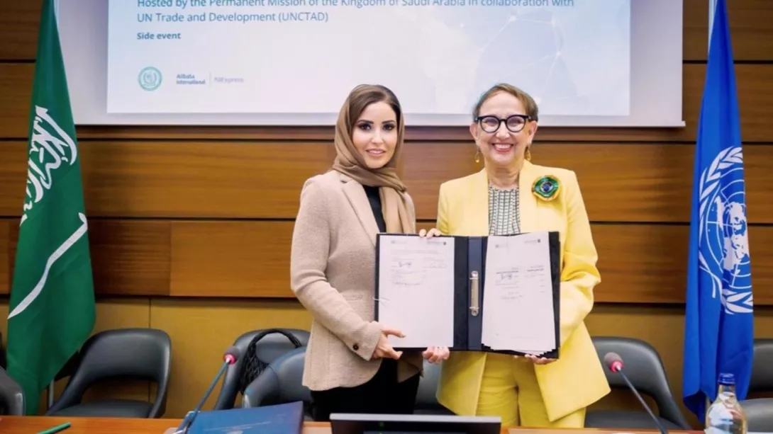 © UNCTAD Photo | A cooperation agreement between UN Trade and Development and Saudi Arabia was signed on 12 May in Geneva by Secretary-General Rebeca Grynspan (right) and the country’s vice commerce minister Eman Al-Mutairi (left).