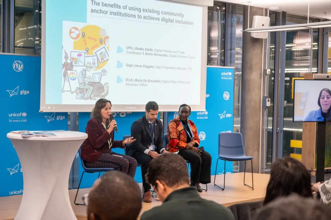 Giga, a joint ITU–UNICEF project, presented its work connecting schools to the Internet in partnership with national governments. By expanding connectivity to schools, Giga not only improves access to information and enriches learning opportunities, but also strengthens the wider digital ecosystem, often extending benefits to entire communities. Similarly to Posts, libraries – represented through insights from the International Federation of Library Associations and Institutions (IFLA) – are also playing a growing role as hubs for digital inclusion by offering Internet access and devices, digital skills training and support services to communities.