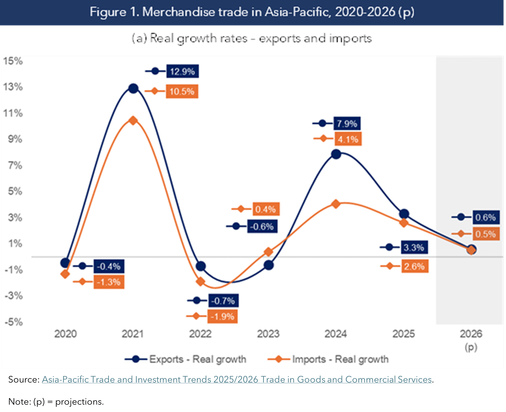 Looking ahead, the outlook for 2026 remains cautious. Merchandise export volume growth is projected at around 0.6%. Developed economies’ exports are expected to contract by about 1.5% due to their exposure to high-tech supply chains under geopolitical strain and weaker demand in major markets. Developing Asian economies may show more resilience, but outcomes will hinge on China’s performance and the strength of global technological demand.