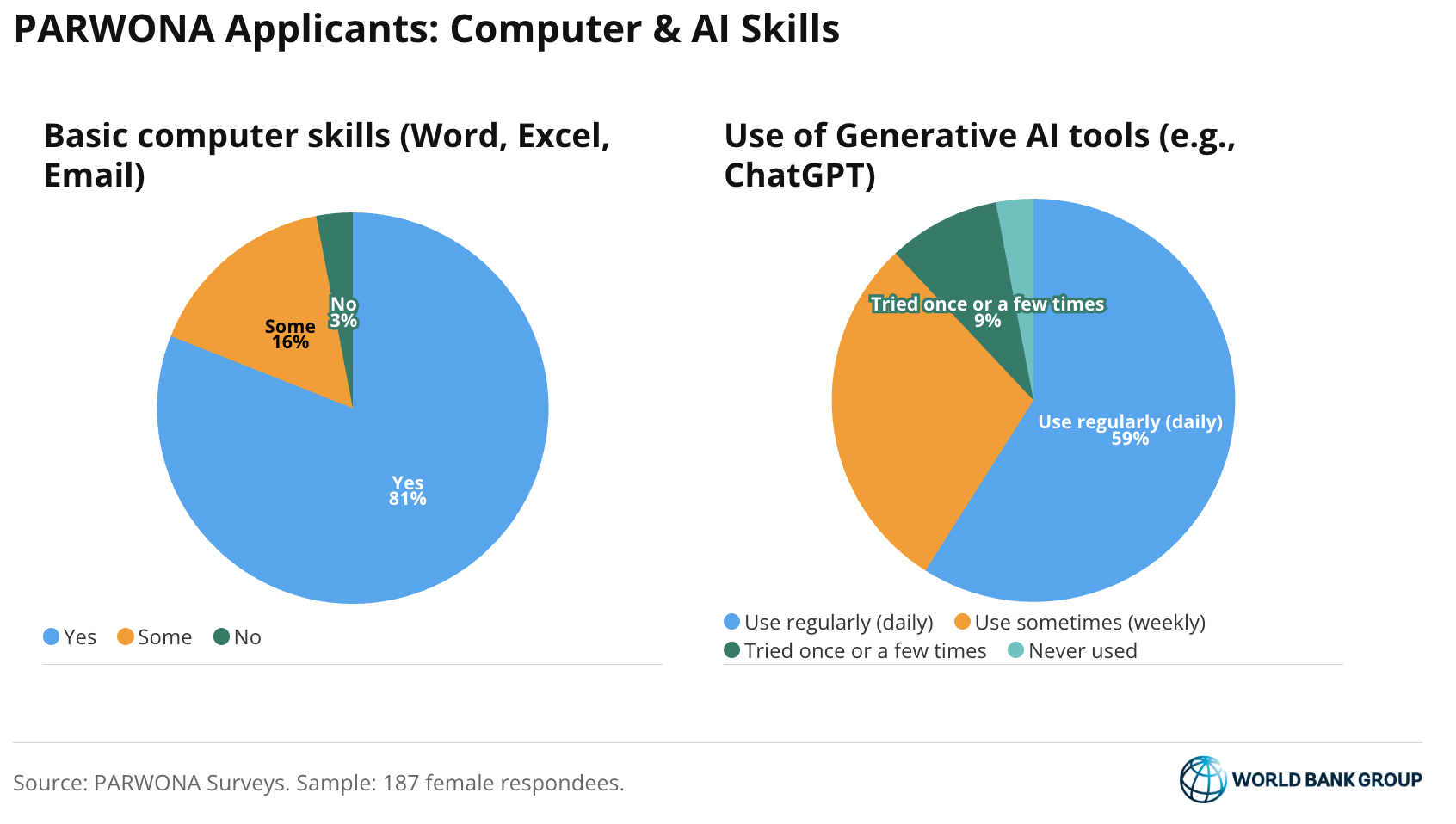 Assessments made during the World Bank Group led Elevate Global Access Through E-Commerce (E-GATE) program launched in 2023 also found that Central Asia’s digital economy cannot grow without active women’s labor participation. Providing Access and Resources for Women’s Online Networking & Advancement (PARWONA, a butterfly in Farsi) was established in 2025 with funding from the Umbrella Facility for Gender Equality (UFGE) to help bridge the gap between women’s untapped economic potential and market demands.